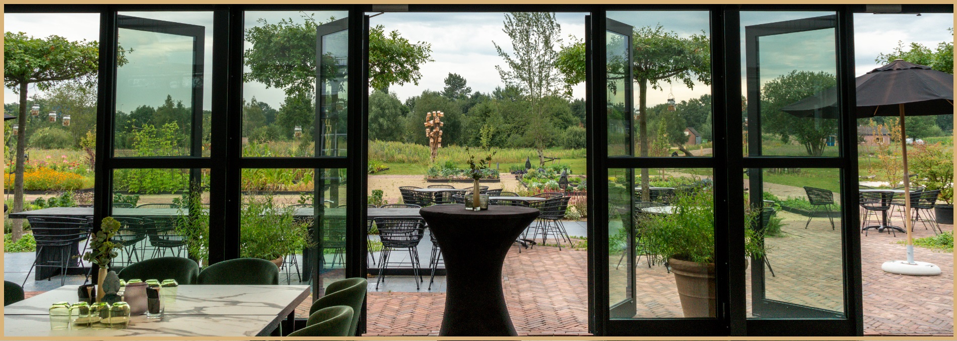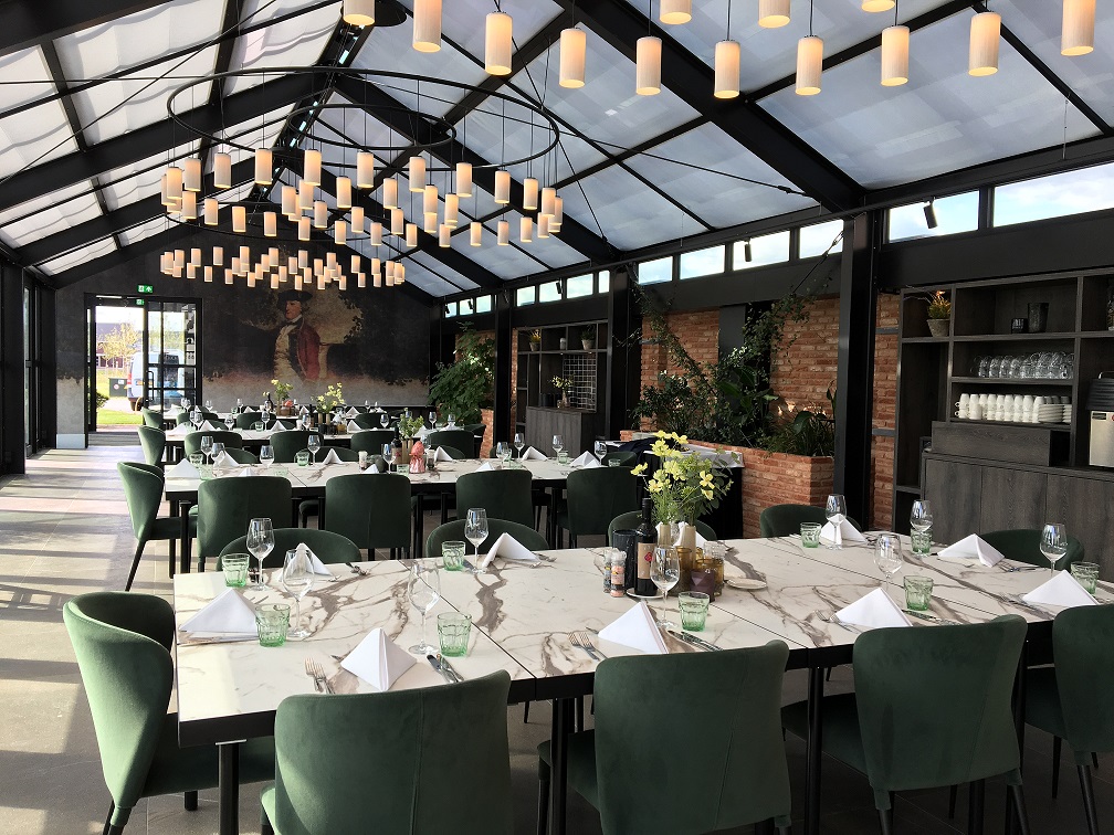 'The Glass House' is located directly on the garden and has a beautiful view over our entire garden. There is also a bar, clothing room and private toilets. “The Glass House” also has large open doors. This creates a very pleasant atmosphere during a festive summer evening.